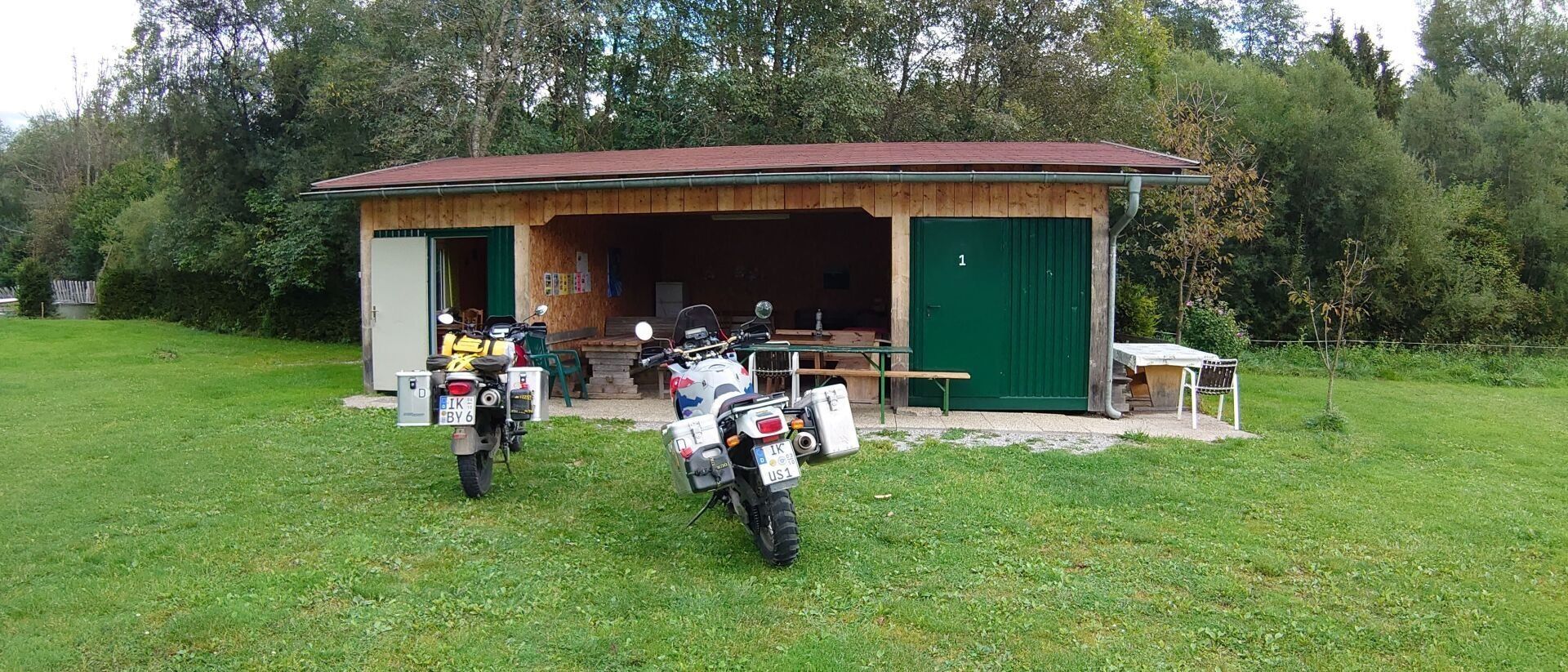 Durch den Tunnel Totes Weib, benannt nach dem in der Nähe herabstürzenden Wasserfalles, geht es bei dunkler werdendem Himmel zum letzten Pass für heute, dem Seeber Pass und dem Seeberg Sattel. Danach sind wir im Seebachtal schon auf direktem Weg zu unserer heutigen Übernachtung. Der kleine Campingplatz Rosskogel & Freizeitteiche bietet bei einsetzendem Regen eine willkommene Übernachtung in einer aus Containern bestehenden Unterkunft mit Unterstellmöglichkeit für die Bikes. Das Wetter kann uns nichts mehr anhaben und wir können im Trockenen kochen und essen.
