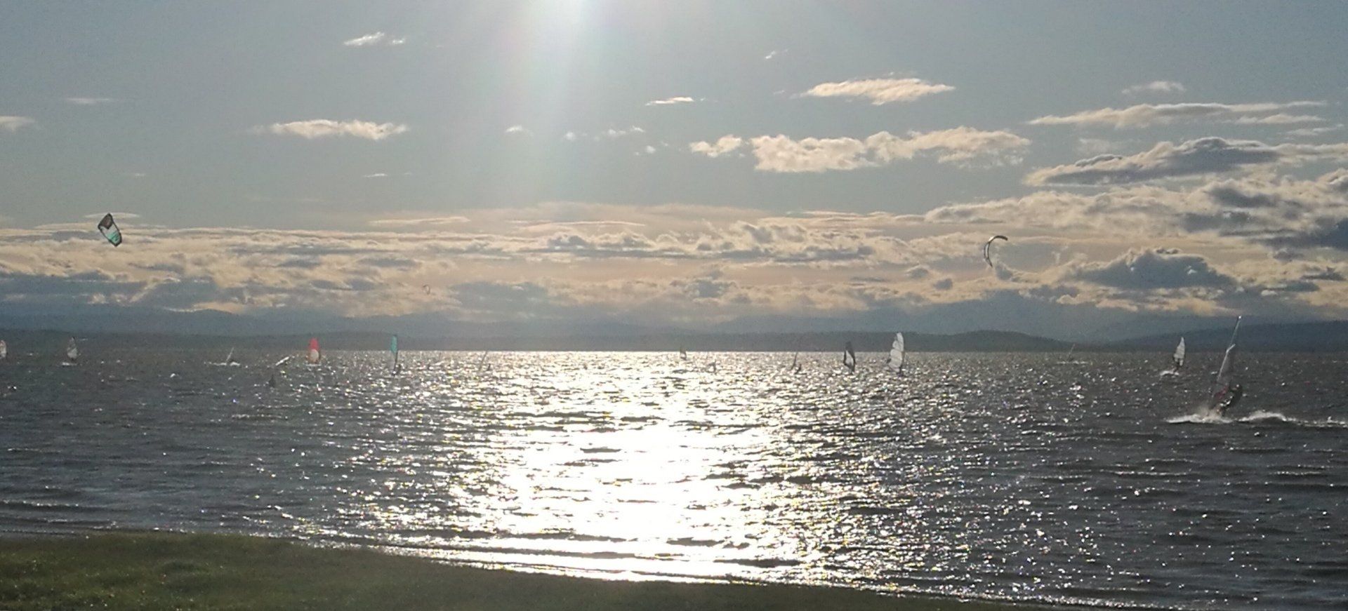Wieder Richtung Süden wird die Landschaft nach dem Dreiländer Eck Österreich, Slowakei, Ungarn immer ebener und wir suchen den tiefsten Punkt von Österreich. Er ist zwischen Maisfeldern gelegen und nur über Feldwege zu erreichen. Aber ein Schild kennzeichnet den Punkt am Schnittpunkt zweier Wege mit 114m. Damit sind wir auch am Neusiedler See angekommen und können bei Sonnenschein unsere Zelte aufbauen. Der See gehört neben dem Balaton zu den wenigen Steppensee Europas und hat auch nur eine maximale Tiefe von 1,8m. Das macht den See zu einem hervorragenden Surfrevier, da jetzt im Herbst der Wind sehr gut weht, sich aber aufgrund der geringen Wassertiefe kaum Welle aufbaut. Wir genießen Wein, Käse, Wurst und Brot und einen schönen Abend vor dem Zelt.