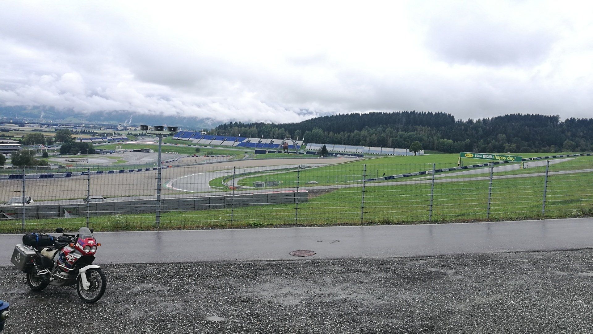 Der ersten Trocknungshalt ist in Spielberg am Red Bull Ring. 1969 wurde in Spielberg der Österreich Ring fertiggestellt und seit dem finden hier regelmäßig Formel 1 Rennen und seit 2016 auch wieder Motorrad-Weltmeisterschafts Rennen statt. Die Renngeschichte ist noch etwas älter, sie begann 1957 im wenige Kilometer entfernten Zeltweg. Die heutige Rennstrecke hat Hanglage und ist von drei Hängen umgeben, wodurch das Rennen wie in einer Arena stattfindet und der Zuschauer einen guten Überblick auf die Rennstrecke hat. Auch wir sind ein Stück den Hang hinauf um die Strecke herum gefahren. Es ist ein faszinierender Blick auf die Rennstrecke.